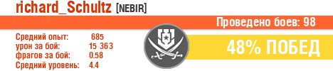 | Класс | Нация | Уровень | Корабль | Боев | Процент побед | Опыт | Урон | Потоплено кораблей | Урон по засвету | Выжил | Сбито самолетов | Выстрелов | Точность | Захват | Защита | Потенциалка | Засвечено кораблей | Рекорд опыта | Рекорд урона | Рекорд потопленных кораблей | Рекорд сбитых самолётов | Рекорд потенциалки | Рекорд засвеченных | Рекорд урона по засвету | Убил/Убит | PRO alfa | последний бой |