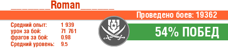 | Класс | Нация | Уровень | Корабль | Боев | Процент побед | Опыт | Урон | Потоплено кораблей | Урон по засвету | Выжил | Сбито самолетов | Выстрелов | Точность | Захват | Защита | Потенциалка | Засвечено кораблей | Рекорд опыта | Рекорд урона | Рекорд потопленных кораблей | Рекорд сбитых самолётов | Рекорд потенциалки | Рекорд засвеченных | Рекорд урона по засвету | Убил/Убит | PRO alfa | последний бой |