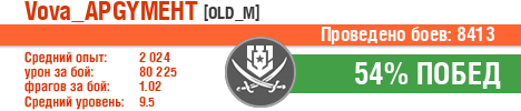 | Класс | Нация | Уровень | Корабль | Боев | Процент побед | Опыт | Урон | Потоплено кораблей | Урон по засвету | Выжил | Сбито самолетов | Выстрелов | Точность | Захват | Защита | Потенциалка | Засвечено кораблей | Рекорд опыта | Рекорд урона | Рекорд потопленных кораблей | Рекорд сбитых самолётов | Рекорд потенциалки | Рекорд засвеченных | Рекорд урона по засвету | Убил/Убит | PRO alfa | последний бой |