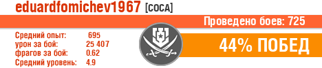 | ЭМ | ussr | 2 | Сторожевой | 7 | 14.29 | 730 | 26317 | 1.57 | 1343 | 28.57 | 0 | 25 | 58.29 | 0 | 0 | 200730 | 0.57 | 1352 | 52473 | 3 | 0 | 301200 | 1 | 7853 | 2.2 | 1936 | 2020-10-01 16:48:05 |