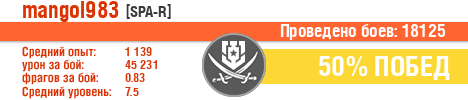| КР | ussr | 3 | Богатырь | 8 | 50 | 525 | 23342 | 1.25 | 0 | 37.5 | 0 | 163 | 31.95 | 0 | 0 | 0 | 0 | 929 | 61030 | 3 | 0 | 0 | 0 | 0 | 2 | 859 | 2016-03-24 15:27:07 |