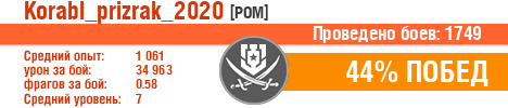 | Класс | Нация | Уровень | Корабль | Боев | Процент побед | Опыт | Урон | Потоплено кораблей | Урон по засвету | Выжил | Сбито самолетов | Выстрелов | Точность | Захват | Защита | Потенциалка | Засвечено кораблей | Рекорд опыта | Рекорд урона | Рекорд потопленных кораблей | Рекорд сбитых самолётов | Рекорд потенциалки | Рекорд засвеченных | Рекорд урона по засвету | Убил/Убит | PRO alfa | последний бой |