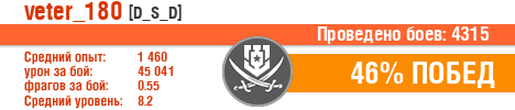 | Класс | Нация | Уровень | Корабль | Боев | Процент побед | Опыт | Урон | Потоплено кораблей | Урон по засвету | Выжил | Сбито самолетов | Выстрелов | Точность | Захват | Защита | Потенциалка | Засвечено кораблей | Рекорд опыта | Рекорд урона | Рекорд потопленных кораблей | Рекорд сбитых самолётов | Рекорд потенциалки | Рекорд засвеченных | Рекорд урона по засвету | Убил/Убит | PRO alfa | последний бой |