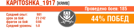 | Класс | Нация | Уровень | Корабль | Боев | Процент побед | Опыт | Урон | Потоплено кораблей | Урон по засвету | Выжил | Сбито самолетов | Выстрелов | Точность | Захват | Защита | Потенциалка | Засвечено кораблей | Рекорд опыта | Рекорд урона | Рекорд потопленных кораблей | Рекорд сбитых самолётов | Рекорд потенциалки | Рекорд засвеченных | Рекорд урона по засвету | Убил/Убит | PRO alfa | последний бой |