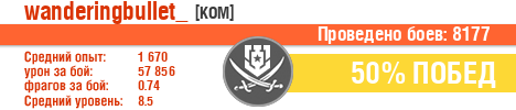 | АВ | ussr | 8 | Победа | 75 | 38.67 | 1443 | 48731 | 0.56 | 41553 | 76 | 4.03 | 0 | 0 | 0 | 17.31 | 210192 | 6.75 | 2730 | 133224 | 3 | 32 | 1445667 | 11 | 177427 | 2.33 | 762 | 2022-07-15 18:15:03 |