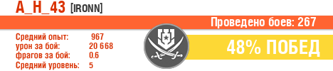 | Класс | Нация | Уровень | Корабль | Боев | Процент побед | Опыт | Урон | Потоплено кораблей | Урон по засвету | Выжил | Сбито самолетов | Выстрелов | Точность | Захват | Защита | Потенциалка | Засвечено кораблей | Рекорд опыта | Рекорд урона | Рекорд потопленных кораблей | Рекорд сбитых самолётов | Рекорд потенциалки | Рекорд засвеченных | Рекорд урона по засвету | Убил/Убит | PRO alfa | последний бой |