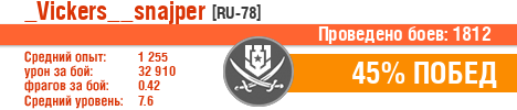 | Класс | Нация | Уровень | Корабль | Боев | Процент побед | Опыт | Урон | Потоплено кораблей | Урон по засвету | Выжил | Сбито самолетов | Выстрелов | Точность | Захват | Защита | Потенциалка | Засвечено кораблей | Рекорд опыта | Рекорд урона | Рекорд потопленных кораблей | Рекорд сбитых самолётов | Рекорд потенциалки | Рекорд засвеченных | Рекорд урона по засвету | Убил/Убит | PRO alfa | последний бой |