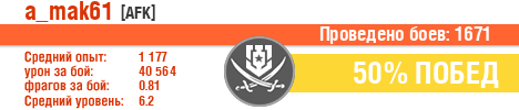 | Боев: | 1671 | 1 | 3 | 8 | 61 | 533 | 1054 |