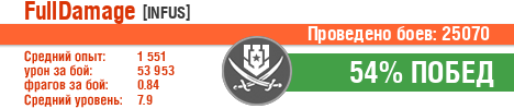 | Урон: | 53948 | 70851 (+2.7) | 47338 (-1.3) | 54893 (+0.1) | 87694 (+5.4) | 36940 (-2.7) | 71673 (+116.7) | 67404 (+88.1) | 72331 (+153.8) | 71600 (+122.7) | 72224 (+21.2) | 69545 (+206.2) | 69475 (+1116.1) | 70079 (+1154.4) | 65246 (+871.5) | 57428 (+237.4) |