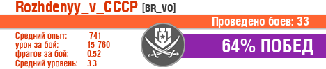 | Класс | Нация | Уровень | Корабль | Боев | Процент побед | Опыт | Урон | Потоплено кораблей | Урон по засвету | Выжил | Сбито самолетов | Выстрелов | Точность | Захват | Защита | Потенциалка | Засвечено кораблей | Рекорд опыта | Рекорд урона | Рекорд потопленных кораблей | Рекорд сбитых самолётов | Рекорд потенциалки | Рекорд засвеченных | Рекорд урона по засвету | Убил/Убит | PRO alfa | последний бой |