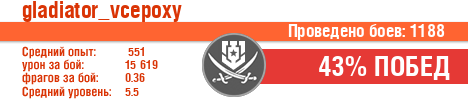 | КР | ussr | 2 | Новик | 6 | 66.67 | 345 | 8563 | 0.33 | 0 | 16.67 | 0 | 74 | 26.29 | 0 | 0 | 0 | 0 | 609 | 12231 | 1 | 0 | 0 | 0 | 0 | 0.4 | 0 | 2016-04-17 18:14:49 |