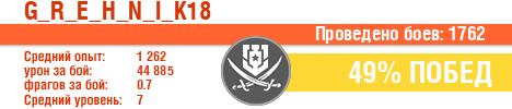 | Класс | Нация | Уровень | Корабль | Боев | Процент побед | Опыт | Урон | Потоплено кораблей | Урон по засвету | Выжил | Сбито самолетов | Выстрелов | Точность | Захват | Защита | Потенциалка | Засвечено кораблей | Рекорд опыта | Рекорд урона | Рекорд потопленных кораблей | Рекорд сбитых самолётов | Рекорд потенциалки | Рекорд засвеченных | Рекорд урона по засвету | Убил/Убит | PRO alfa | последний бой |