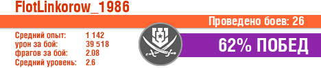 | Класс | Нация | Уровень | Корабль | Боев | Процент побед | Опыт | Урон | Потоплено кораблей | Урон по засвету | Выжил | Сбито самолетов | Выстрелов | Точность | Захват | Защита | Потенциалка | Засвечено кораблей | Рекорд опыта | Рекорд урона | Рекорд потопленных кораблей | Рекорд сбитых самолётов | Рекорд потенциалки | Рекорд засвеченных | Рекорд урона по засвету | Убил/Убит | PRO alfa | последний бой |