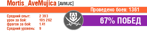 | Урон: | 105262 | 160618 (+81.5) | 140087 (+731.5) | 47626 (-1166.5) | 131542 (+1106.8) | 66233 (-57.4) | 102997 (-108.1) | 105637 (+264.7) | 107036 (+1142.1) | 100896 (-1055.6) |