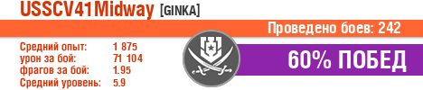 | Класс | Нация | Уровень | Корабль | Боев | Процент побед | Опыт | Урон | Потоплено кораблей | Урон по засвету | Выжил | Сбито самолетов | Выстрелов | Точность | Захват | Защита | Потенциалка | Засвечено кораблей | Рекорд опыта | Рекорд урона | Рекорд потопленных кораблей | Рекорд сбитых самолётов | Рекорд потенциалки | Рекорд засвеченных | Рекорд урона по засвету | Убил/Убит | PRO alfa | последний бой |