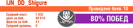 | Класс | Нация | Уровень | Корабль | Боев | Процент побед | Опыт | Урон | Потоплено кораблей | Урон по засвету | Выжил | Сбито самолетов | Выстрелов | Точность | Захват | Защита | Потенциалка | Засвечено кораблей | Рекорд опыта | Рекорд урона | Рекорд потопленных кораблей | Рекорд сбитых самолётов | Рекорд потенциалки | Рекорд засвеченных | Рекорд урона по засвету | Убил/Убит | PRO alfa | последний бой |