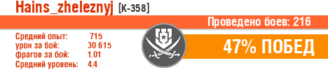| Боев: | 216 | 1 | 1 | 1 | 3 | 12 | 6 | 2 | 66 | 148 |