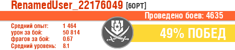 | Класс | Нация | Уровень | Корабль | Боев | Процент побед | Опыт | Урон | Потоплено кораблей | Урон по засвету | Выжил | Сбито самолетов | Выстрелов | Точность | Захват | Защита | Потенциалка | Засвечено кораблей | Рекорд опыта | Рекорд урона | Рекорд потопленных кораблей | Рекорд сбитых самолётов | Рекорд потенциалки | Рекорд засвеченных | Рекорд урона по засвету | Убил/Убит | PRO alfa | последний бой |