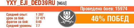 | Класс | Нация | Уровень | Корабль | Боев | Процент побед | Опыт | Урон | Потоплено кораблей | Урон по засвету | Выжил | Сбито самолетов | Выстрелов | Точность | Захват | Защита | Потенциалка | Засвечено кораблей | Рекорд опыта | Рекорд урона | Рекорд потопленных кораблей | Рекорд сбитых самолётов | Рекорд потенциалки | Рекорд засвеченных | Рекорд урона по засвету | Убил/Убит | PRO alfa | последний бой |