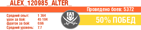 | Класс | Нация | Уровень | Корабль | Боев | Процент побед | Опыт | Урон | Потоплено кораблей | Урон по засвету | Выжил | Сбито самолетов | Выстрелов | Точность | Захват | Защита | Потенциалка | Засвечено кораблей | Рекорд опыта | Рекорд урона | Рекорд потопленных кораблей | Рекорд сбитых самолётов | Рекорд потенциалки | Рекорд засвеченных | Рекорд урона по засвету | Убил/Убит | PRO alfa | последний бой |