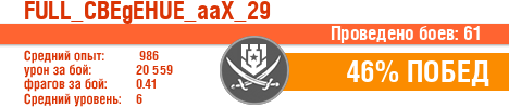 | Класс | Нация | Уровень | Корабль | Боев | Процент побед | Опыт | Урон | Потоплено кораблей | Урон по засвету | Выжил | Сбито самолетов | Выстрелов | Точность | Захват | Защита | Потенциалка | Засвечено кораблей | Рекорд опыта | Рекорд урона | Рекорд потопленных кораблей | Рекорд сбитых самолётов | Рекорд потенциалки | Рекорд засвеченных | Рекорд урона по засвету | Убил/Убит | PRO alfa | последний бой |