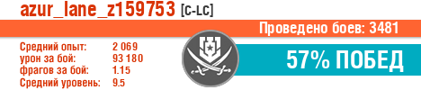 | Класс | Нация | Уровень | Корабль | Боев | Процент побед | Опыт | Урон | Потоплено кораблей | Урон по засвету | Выжил | Сбито самолетов | Выстрелов | Точность | Захват | Защита | Потенциалка | Засвечено кораблей | Рекорд опыта | Рекорд урона | Рекорд потопленных кораблей | Рекорд сбитых самолётов | Рекорд потенциалки | Рекорд засвеченных | Рекорд урона по засвету | Убил/Убит | PRO alfa | последний бой |