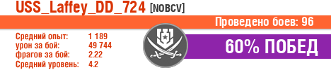 | Класс | Нация | Уровень | Корабль | Боев | Процент побед | Опыт | Урон | Потоплено кораблей | Урон по засвету | Выжил | Сбито самолетов | Выстрелов | Точность | Захват | Защита | Потенциалка | Засвечено кораблей | Рекорд опыта | Рекорд урона | Рекорд потопленных кораблей | Рекорд сбитых самолётов | Рекорд потенциалки | Рекорд засвеченных | Рекорд урона по засвету | Убил/Убит | PRO alfa | последний бой |
