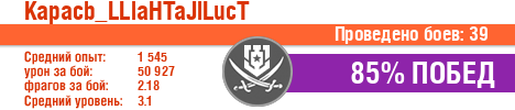 | Класс | Нация | Уровень | Корабль | Боев | Процент побед | Опыт | Урон | Потоплено кораблей | Урон по засвету | Выжил | Сбито самолетов | Выстрелов | Точность | Захват | Защита | Потенциалка | Засвечено кораблей | Рекорд опыта | Рекорд урона | Рекорд потопленных кораблей | Рекорд сбитых самолётов | Рекорд потенциалки | Рекорд засвеченных | Рекорд урона по засвету | Убил/Убит | PRO alfa | последний бой |