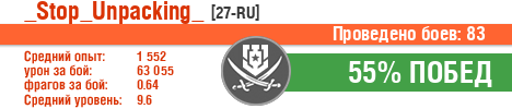 | Класс | Нация | Уровень | Корабль | Боев | Процент побед | Опыт | Урон | Потоплено кораблей | Урон по засвету | Выжил | Сбито самолетов | Выстрелов | Точность | Захват | Защита | Потенциалка | Засвечено кораблей | Рекорд опыта | Рекорд урона | Рекорд потопленных кораблей | Рекорд сбитых самолётов | Рекорд потенциалки | Рекорд засвеченных | Рекорд урона по засвету | Убил/Убит | PRO alfa | последний бой |