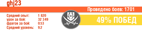 | Класс | Нация | Уровень | Корабль | Боев | Процент побед | Опыт | Урон | Потоплено кораблей | Урон по засвету | Выжил | Сбито самолетов | Выстрелов | Точность | Захват | Защита | Потенциалка | Засвечено кораблей | Рекорд опыта | Рекорд урона | Рекорд потопленных кораблей | Рекорд сбитых самолётов | Рекорд потенциалки | Рекорд засвеченных | Рекорд урона по засвету | Убил/Убит | PRO alfa | последний бой |