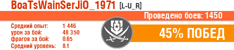| Класс | Нация | Уровень | Корабль | Боев | Процент побед | Опыт | Урон | Потоплено кораблей | Урон по засвету | Выжил | Сбито самолетов | Выстрелов | Точность | Захват | Защита | Потенциалка | Засвечено кораблей | Рекорд опыта | Рекорд урона | Рекорд потопленных кораблей | Рекорд сбитых самолётов | Рекорд потенциалки | Рекорд засвеченных | Рекорд урона по засвету | Убил/Убит | PRO alfa | последний бой |