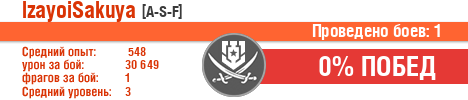 | Класс | Нация | Уровень | Корабль | Боев | Процент побед | Опыт | Урон | Потоплено кораблей | Урон по засвету | Выжил | Сбито самолетов | Выстрелов | Точность | Захват | Защита | Потенциалка | Засвечено кораблей | Рекорд опыта | Рекорд урона | Рекорд потопленных кораблей | Рекорд сбитых самолётов | Рекорд потенциалки | Рекорд засвеченных | Рекорд урона по засвету | Убил/Убит | PRO alfa | последний бой |