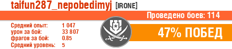 | Класс | Нация | Уровень | Корабль | Боев | Процент побед | Опыт | Урон | Потоплено кораблей | Урон по засвету | Выжил | Сбито самолетов | Выстрелов | Точность | Захват | Защита | Потенциалка | Засвечено кораблей | Рекорд опыта | Рекорд урона | Рекорд потопленных кораблей | Рекорд сбитых самолётов | Рекорд потенциалки | Рекорд засвеченных | Рекорд урона по засвету | Убил/Убит | PRO alfa | последний бой |