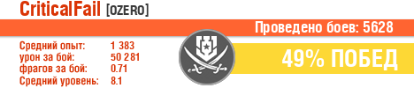 | Боев: | 5621 | 5 | 10 | 10 | 8 | 10 | 171 | 127 | 104 | 123 | 129 | 298 | 1411 | 807 | 63 | 1706 |