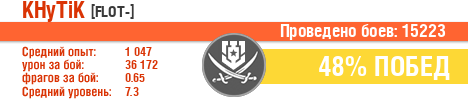 | ЭМ | ussr | 2 | Сторожевой | 7 | 42.86 | 185 | 5434 | 0.43 | 0 | 0 | 0 | 11 | 41.56 | 0 | 0 | 0 | 0 | 394 | 18585 | 1 | 0 | 0 | 0 | 0 | 0.43 | 178 | 2015-10-20 22:22:48 |