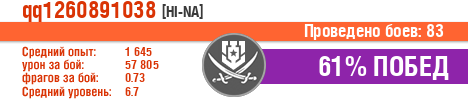 | Класс | Нация | Уровень | Корабль | Боев | Процент побед | Опыт | Урон | Потоплено кораблей | Урон по засвету | Выжил | Сбито самолетов | Выстрелов | Точность | Захват | Защита | Потенциалка | Засвечено кораблей | Рекорд опыта | Рекорд урона | Рекорд потопленных кораблей | Рекорд сбитых самолётов | Рекорд потенциалки | Рекорд засвеченных | Рекорд урона по засвету | Убил/Убит | PRO alfa | последний бой |