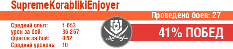 | Класс | Нация | Уровень | Корабль | Боев | Процент побед | Опыт | Урон | Потоплено кораблей | Урон по засвету | Выжил | Сбито самолетов | Выстрелов | Точность | Захват | Защита | Потенциалка | Засвечено кораблей | Рекорд опыта | Рекорд урона | Рекорд потопленных кораблей | Рекорд сбитых самолётов | Рекорд потенциалки | Рекорд засвеченных | Рекорд урона по засвету | Убил/Убит | PRO alfa | последний бой |