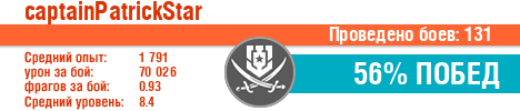 | Класс | Нация | Уровень | Корабль | Боев | Процент побед | Опыт | Урон | Потоплено кораблей | Урон по засвету | Выжил | Сбито самолетов | Выстрелов | Точность | Захват | Защита | Потенциалка | Засвечено кораблей | Рекорд опыта | Рекорд урона | Рекорд потопленных кораблей | Рекорд сбитых самолётов | Рекорд потенциалки | Рекорд засвеченных | Рекорд урона по засвету | Убил/Убит | PRO alfa | последний бой |