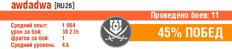 | Класс | Нация | Уровень | Корабль | Боев | Процент побед | Опыт | Урон | Потоплено кораблей | Урон по засвету | Выжил | Сбито самолетов | Выстрелов | Точность | Захват | Защита | Потенциалка | Засвечено кораблей | Рекорд опыта | Рекорд урона | Рекорд потопленных кораблей | Рекорд сбитых самолётов | Рекорд потенциалки | Рекорд засвеченных | Рекорд урона по засвету | Убил/Убит | PRO alfa | последний бой |