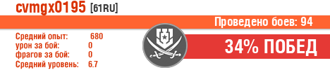 | Класс | Нация | Уровень | Корабль | Боев | Процент побед | Опыт | Урон | Потоплено кораблей | Урон по засвету | Выжил | Сбито самолетов | Выстрелов | Точность | Захват | Защита | Потенциалка | Засвечено кораблей | Рекорд опыта | Рекорд урона | Рекорд потопленных кораблей | Рекорд сбитых самолётов | Рекорд потенциалки | Рекорд засвеченных | Рекорд урона по засвету | Убил/Убит | PRO alfa | последний бой |