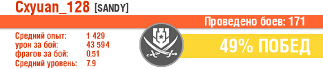 | Класс | Нация | Уровень | Корабль | Боев | Процент побед | Опыт | Урон | Потоплено кораблей | Урон по засвету | Выжил | Сбито самолетов | Выстрелов | Точность | Захват | Защита | Потенциалка | Засвечено кораблей | Рекорд опыта | Рекорд урона | Рекорд потопленных кораблей | Рекорд сбитых самолётов | Рекорд потенциалки | Рекорд засвеченных | Рекорд урона по засвету | Убил/Убит | PRO alfa | последний бой |
