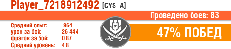 | Класс | Нация | Уровень | Корабль | Боев | Процент побед | Опыт | Урон | Потоплено кораблей | Урон по засвету | Выжил | Сбито самолетов | Выстрелов | Точность | Захват | Защита | Потенциалка | Засвечено кораблей | Рекорд опыта | Рекорд урона | Рекорд потопленных кораблей | Рекорд сбитых самолётов | Рекорд потенциалки | Рекорд засвеченных | Рекорд урона по засвету | Убил/Убит | PRO alfa | последний бой |