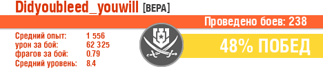 | Класс | Нация | Уровень | Корабль | Боев | Процент побед | Опыт | Урон | Потоплено кораблей | Урон по засвету | Выжил | Сбито самолетов | Выстрелов | Точность | Захват | Защита | Потенциалка | Засвечено кораблей | Рекорд опыта | Рекорд урона | Рекорд потопленных кораблей | Рекорд сбитых самолётов | Рекорд потенциалки | Рекорд засвеченных | Рекорд урона по засвету | Убил/Убит | PRO alfa | последний бой |