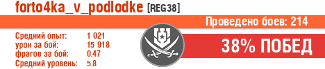 | Класс | Нация | Уровень | Корабль | Боев | Процент побед | Опыт | Урон | Потоплено кораблей | Урон по засвету | Выжил | Сбито самолетов | Выстрелов | Точность | Захват | Защита | Потенциалка | Засвечено кораблей | Рекорд опыта | Рекорд урона | Рекорд потопленных кораблей | Рекорд сбитых самолётов | Рекорд потенциалки | Рекорд засвеченных | Рекорд урона по засвету | Убил/Убит | PRO alfa | последний бой |