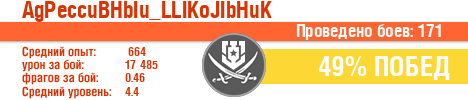 | Класс | Нация | Уровень | Корабль | Боев | Процент побед | Опыт | Урон | Потоплено кораблей | Урон по засвету | Выжил | Сбито самолетов | Выстрелов | Точность | Захват | Защита | Потенциалка | Засвечено кораблей | Рекорд опыта | Рекорд урона | Рекорд потопленных кораблей | Рекорд сбитых самолётов | Рекорд потенциалки | Рекорд засвеченных | Рекорд урона по засвету | Убил/Убит | PRO alfa | последний бой |