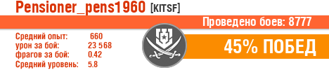 | Боев: | 8777 | 9 | 104 | 54 | 692 | 1104 |