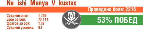 | Класс | Нация | Уровень | Корабль | Боев | Процент побед | Опыт | Урон | Потоплено кораблей | Урон по засвету | Выжил | Сбито самолетов | Выстрелов | Точность | Захват | Защита | Потенциалка | Засвечено кораблей | Рекорд опыта | Рекорд урона | Рекорд потопленных кораблей | Рекорд сбитых самолётов | Рекорд потенциалки | Рекорд засвеченных | Рекорд урона по засвету | Убил/Убит | PRO alfa | последний бой |