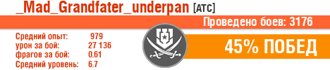 | Класс | Нация | Уровень | Корабль | Боев | Процент побед | Опыт | Урон | Потоплено кораблей | Урон по засвету | Выжил | Сбито самолетов | Выстрелов | Точность | Захват | Защита | Потенциалка | Засвечено кораблей | Рекорд опыта | Рекорд урона | Рекорд потопленных кораблей | Рекорд сбитых самолётов | Рекорд потенциалки | Рекорд засвеченных | Рекорд урона по засвету | Убил/Убит | PRO alfa | последний бой |
