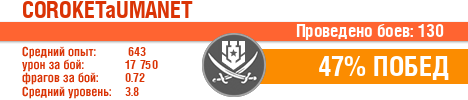| Класс | Нация | Уровень | Корабль | Боев | Процент побед | Опыт | Урон | Потоплено кораблей | Урон по засвету | Выжил | Сбито самолетов | Выстрелов | Точность | Захват | Защита | Потенциалка | Засвечено кораблей | Рекорд опыта | Рекорд урона | Рекорд потопленных кораблей | Рекорд сбитых самолётов | Рекорд потенциалки | Рекорд засвеченных | Рекорд урона по засвету | Убил/Убит | PRO alfa | последний бой |
