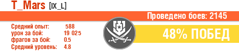 | Боев: | 2145 | 26 | 54 | 121 | 281 | 777 |